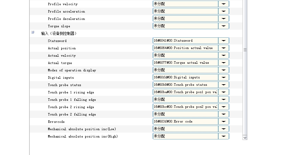 采用總線伺服軸時(shí),PDO中需要添加0x6060,0x6061和0x60ff三個(gè)對(duì)象字典。