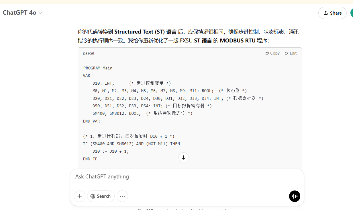 大家好!今天我們將深入探討如何使用三菱FX5UC PLC與亞泰儀表實現MODBUS通訊。通過梯形圖、ST語言以及Chatgpt編寫ST程序,我們將展示不同編程方式如何在相同的通訊任務中帶來不同的效果,助你選擇最適合你項目的編程方式。三種不同的程序,都已經上機測試過,歡迎大家探索交流,謝謝大家!
