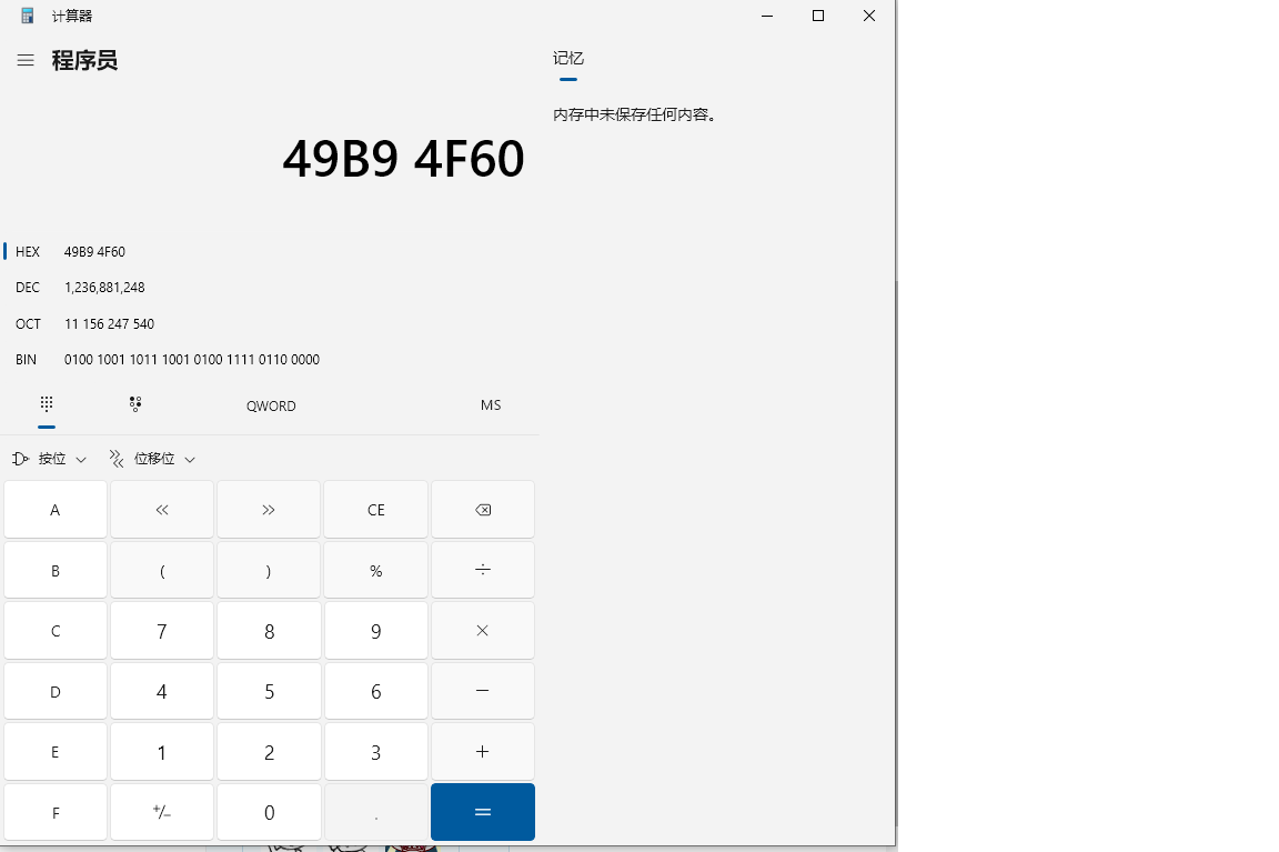 十六進制49B94F60, 轉換成十進制就是 1236881248