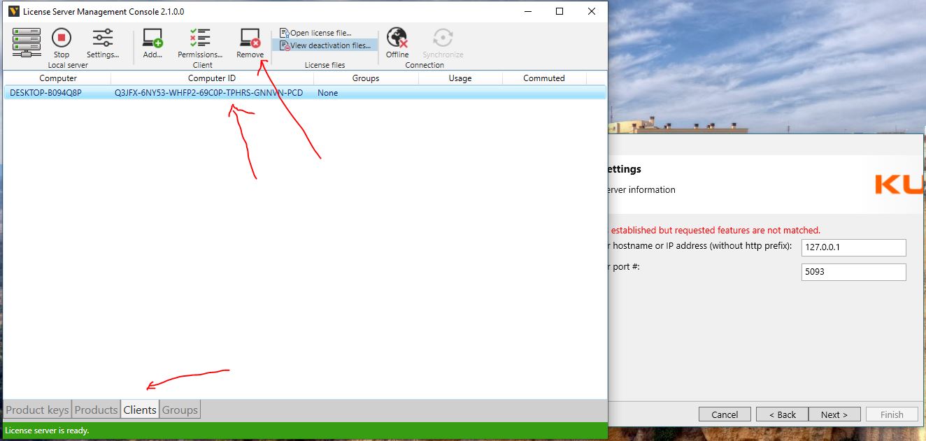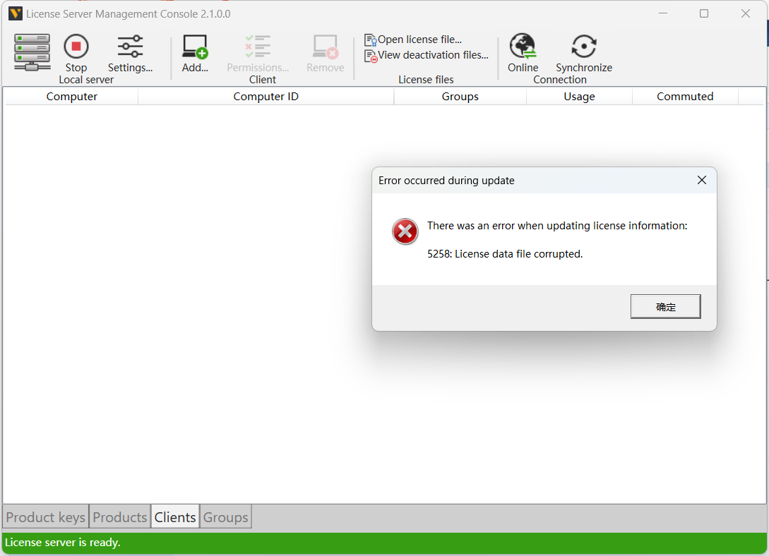 2. 如果報錯,打開Visual Components License Server 控制面板,窗口下面選擇“客戶”(clents)標簽,選中當前活動連接(也就是剛剛本機請求授權的連接),窗口上面工具欄選擇刪除當前連接。