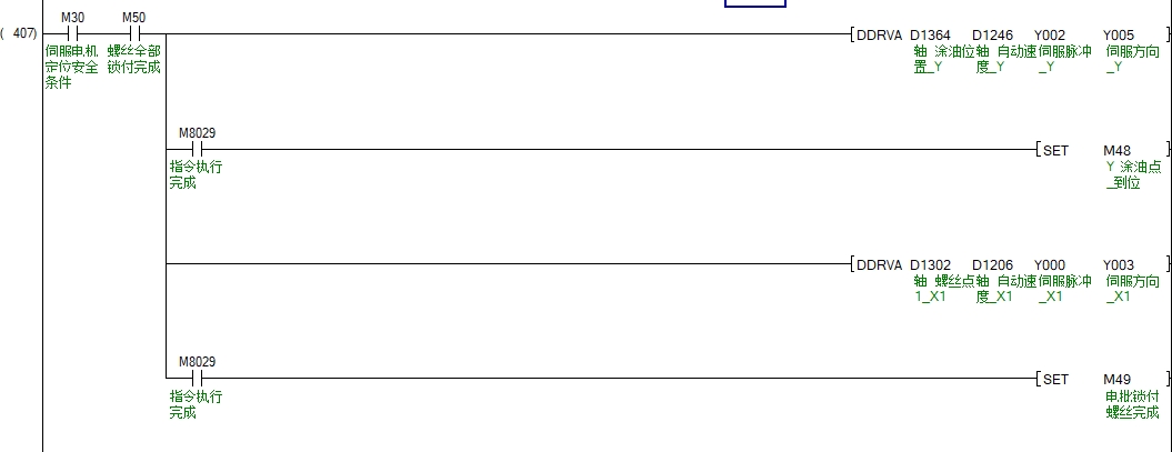 請教一下大家,在三菱FX3U控制兩個伺服電機中M8029的處理方法,圖片中程序的m8029有沒有問題呢?