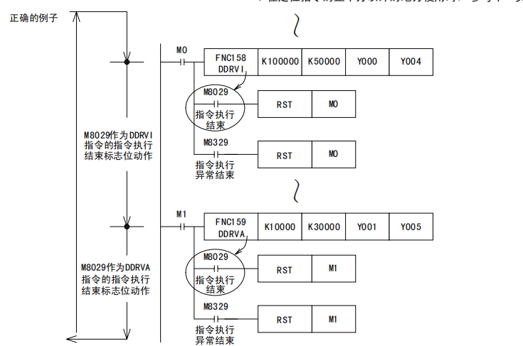 如果編寫多個定位指令, 那么指令執行結束標志位 M8029、 指令執行異常結束標志位 M8329 隨各個指令而