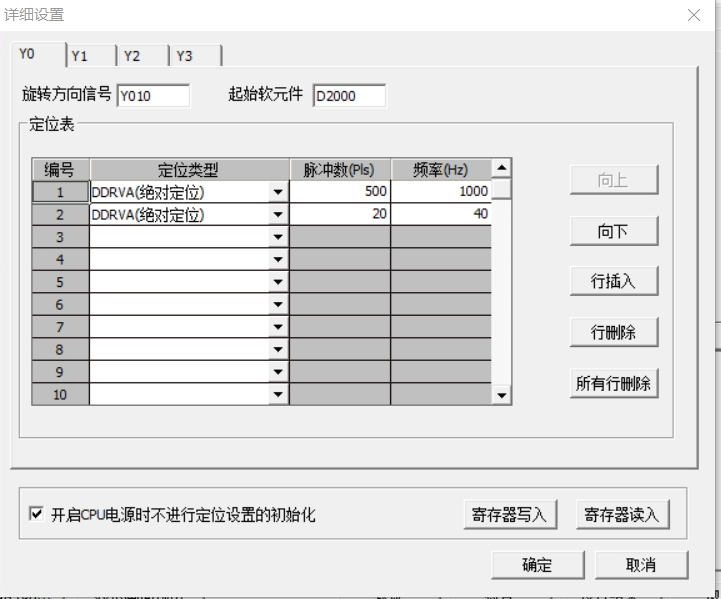 如圖所示,內置定位參數下方有個     ▢開啟CPU電源時不進行定位設置初始化                后面有兩個按鈕     寄存器寫入    寄存器讀取