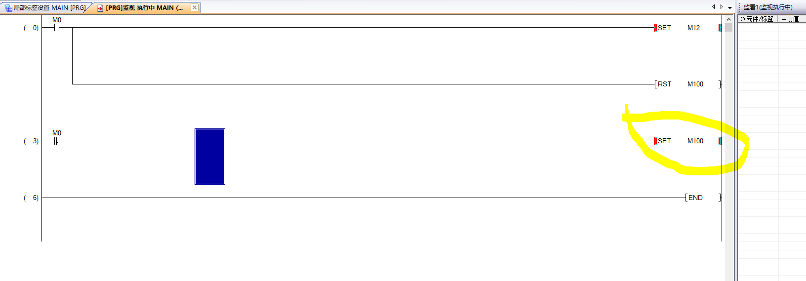 下降沿是從ON到OFF觸發(fā),你的程序觸發(fā)了M0又置位了M0,所以到下降沿這里始終M0是OFF的。