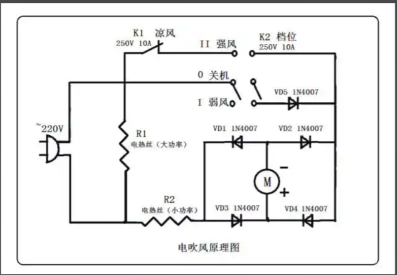 電吹風電路圖,是不是這么回事。