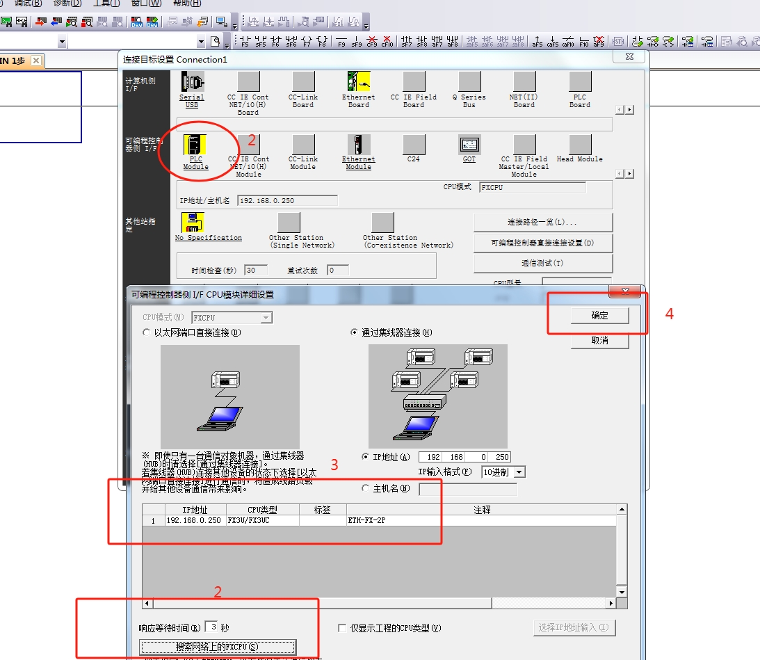 FX 3U的CPU加裝了一個,以太網的擴展模塊,準備用以太網讀取程序,編程軟件 傳輸設置    計算機側Ethemet Board GX Word是灰色的,不能選擇,是編程軟件版本的問題么,限制用1.61L版本