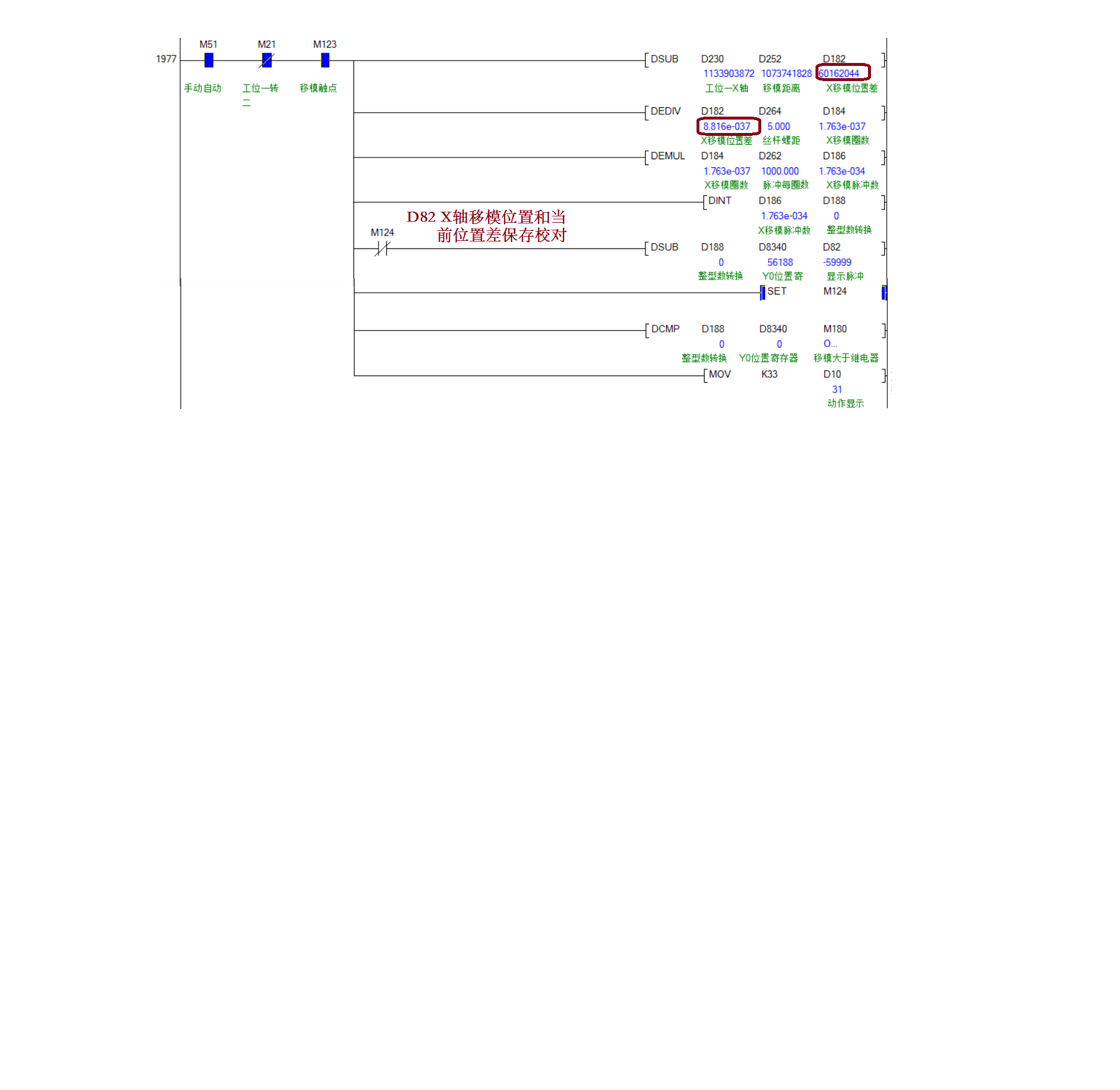 移動數(shù)據(jù)存儲在D252,數(shù)據(jù)類型32位浮點數(shù),