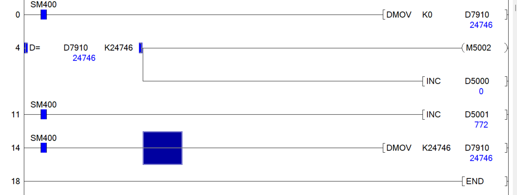 如圖,數值明明相等,就是不接通,不是雙線圈,交叉搜索沒有重復。已斷電重啟多次,程序也是在線寫入