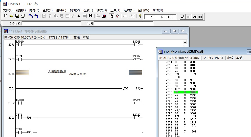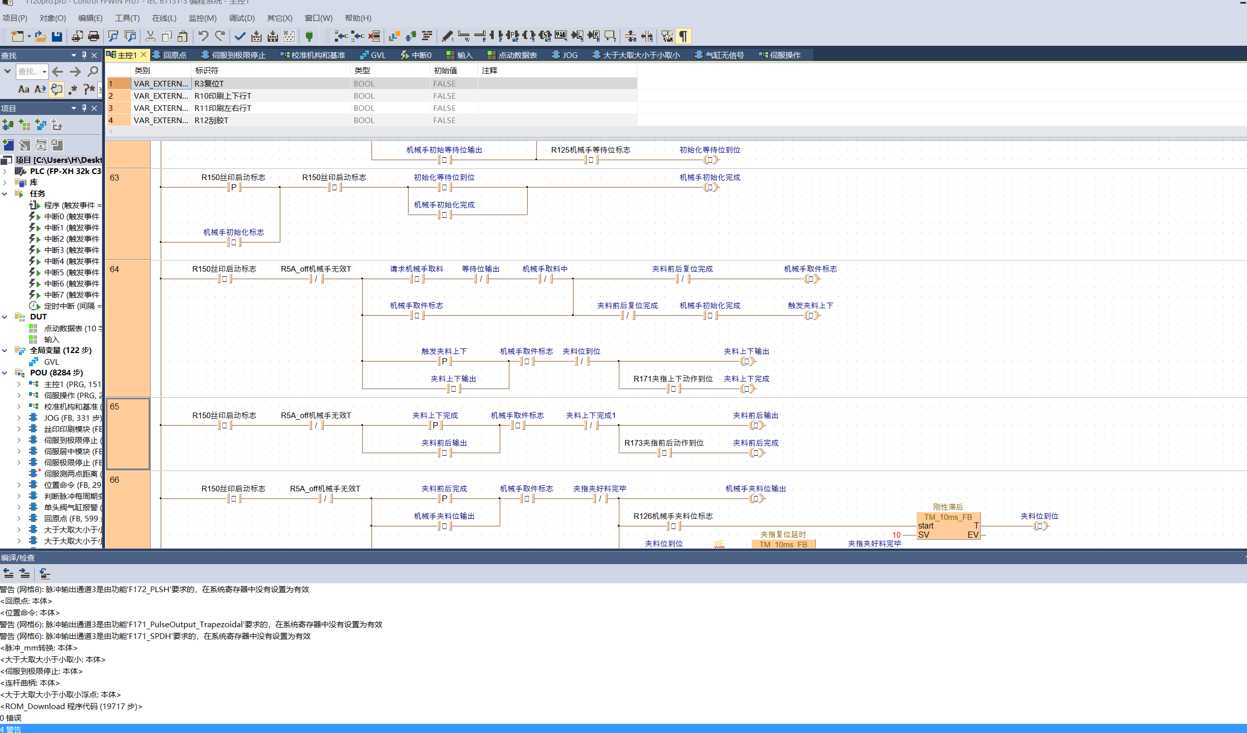 公司用了很久的絲印機有問題了,用的是松下FP-XH的PLC,原來的廠商說是PLC壞了,買了新的換上去,從別的正常的絲印機用FPWIN Pro7 版本7.7.4.0讀出來的程序,編譯的時候竟然報錯,如圖所示,這也能報錯,真是太狗了源程序附上,用FPWIN GR7讀出來又會有很多錯誤的地方 ,對松下的PLC也不熟悉,廠商也找不到原來搞程序的人了,公司也倒閉了,這下難搞了,請各位大神們觀摩下