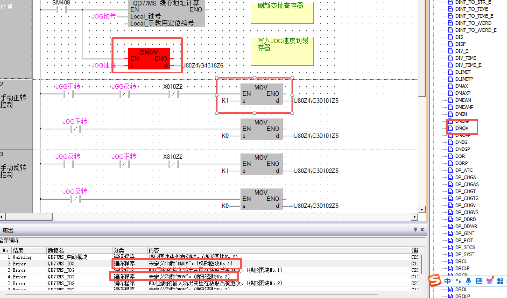 最近剛接觸FBD編程,但發現Works2軟件讓人很懵逼,同一個程序,有時候報錯,有時候沒錯。 現在報錯“未定義函數DMOV/MOV”,有點無語了,難道要我去寫這兩個指令的的底層代碼嗎,太扯了。想問問到大佬們,這是哪里出問題了,是指令不對,標簽不對,還是編程軟件有問題,系統庫有問題