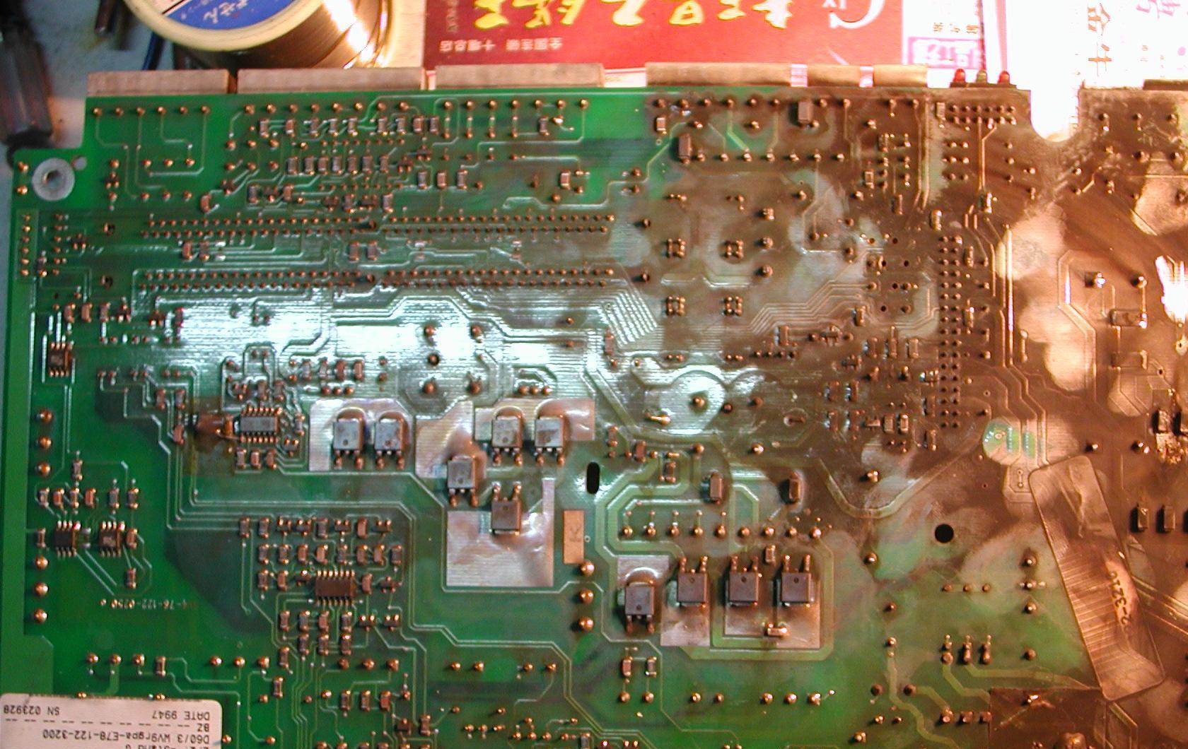 報廢了,又要花銀子了,估計是里面灰塵積多了,這天氣濕氣又重,在斷通電瞬間易引起電極間產生電弧而燒壞線路板,