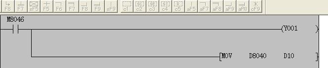 當M8046閉合時,Y1點閉合,并將D8040寄存器內的數據傳送至D10寄存器內。