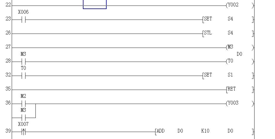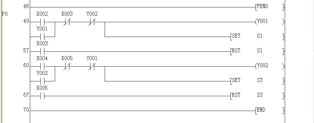你看一下截圖X0是手自動開關、X6是電流表下限、X7是下降時間設定、X2是手動正轉啟動、X3是手動正轉停止、X4是手動反轉啟動、X5是手動反轉停止
