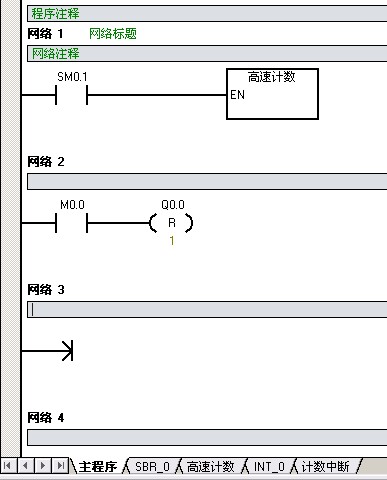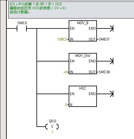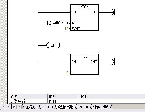 程序要求高速計數,當計數到3時,產生中斷,Q0.0輸出為ON,HC0計數當前值更新為0。但是現在如果I0.0再誤動作的話,HC0的數值還是會變化的,我該怎么改程序,就可以實現Q0.0為ON時,即使I0.0誤動作,HC0的數值一直保持為0,直到Q0.0為OFF后,恢復再高速計數。請大家直接,謝謝