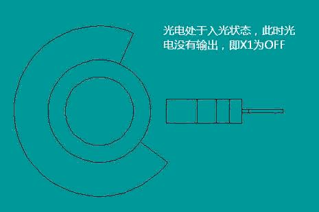 馬達回原點時首先判斷條件,分為兩種,一種是光電處于遮光狀態,即X1為ON,別一種是光電處于入光狀態,X1為OFF,