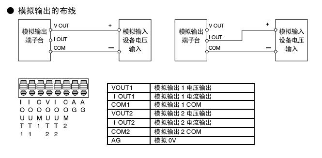 1、按圖接線,根據你的模擬量輸出方式選擇電流輸出還是電壓輸出的接線方式。