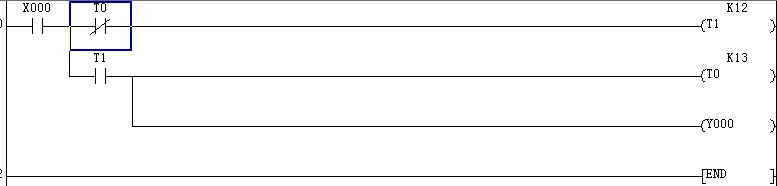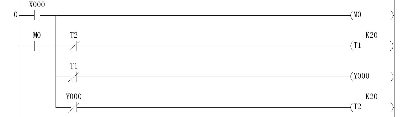 自己先說一下:當X0輸入時,M0動作并自鎖。 這時按道理剛開始繼電器T2,Y0和T1同時得電。對!繼電器Y0得電后Y000斷開了繼電器T2!這樣T2就得等到繼電器T1計完時斷開常閉的T1進而讓常閉的Y000復位而讓繼電器T2得電計時。 剛想明白的!真是夠水的!打擾各位了!