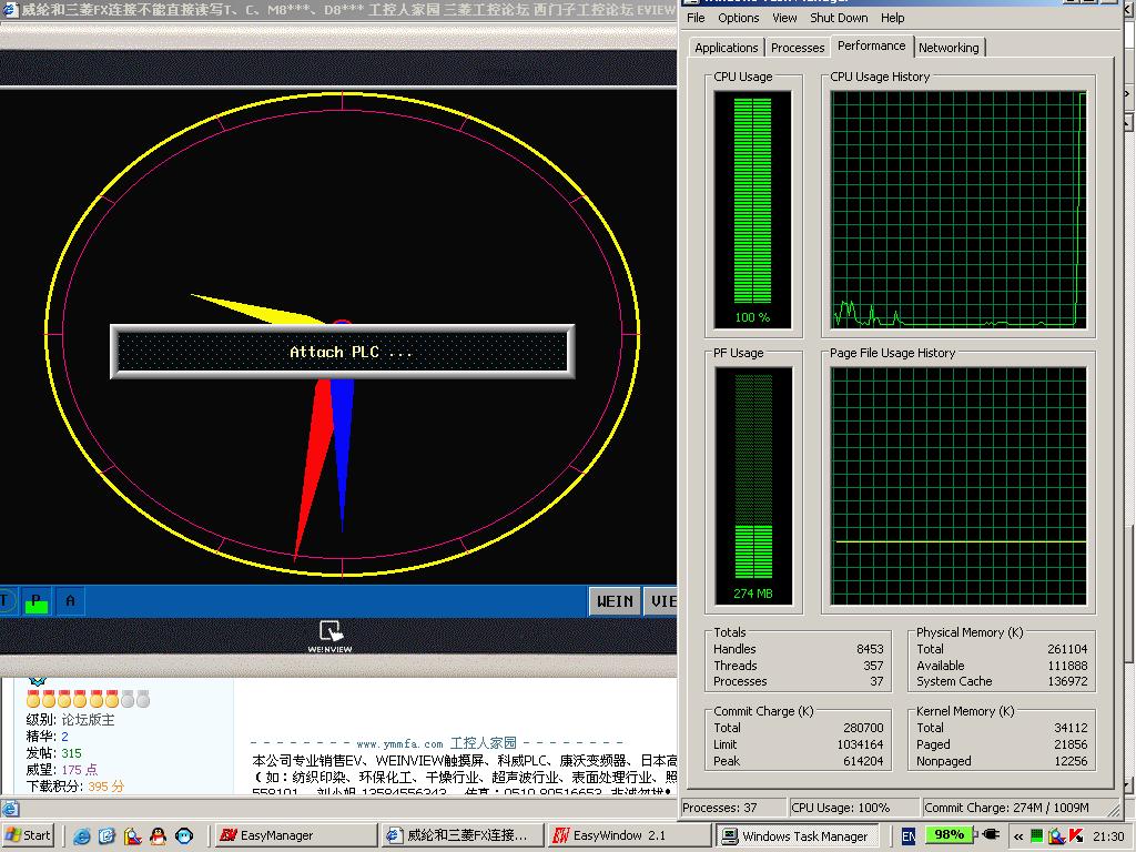 就像三菱的SOFTGOT,未安裝License Key也只能用十分鐘,但SOFTGOT啟動時會明確告知,用到十分鐘停止的時候也有信息框提示,而不會出現(xiàn)CPU使用率猛增的現(xiàn)象.不過SOFGOT卻沒有EasyManager使用方便.