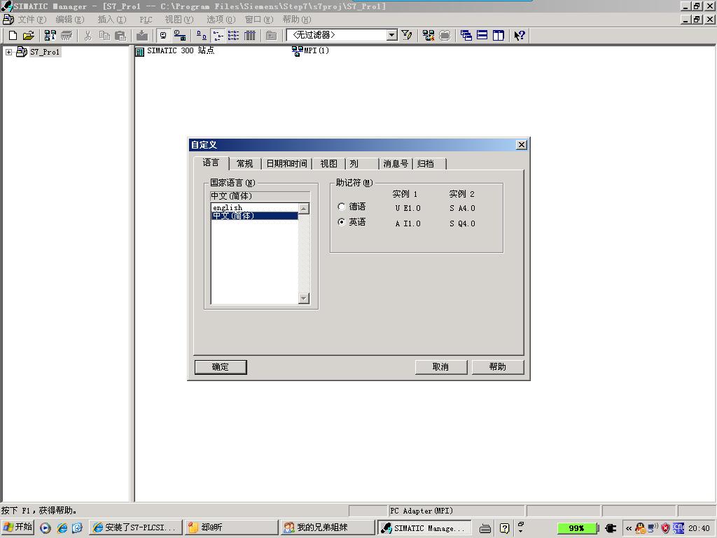 我的電腦上原來(lái)安裝了中文step7 V5.4,一直正常,多次想安裝中文S7-PLCSIM都沒(méi)有成功,今天用《S7-300/400 PLC應(yīng)用技術(shù)》(廖常初主編 )一書提供的附贈(zèng)光盤上的S7-PLCSIM軟件安裝后,中文step7變成了英文step7,怎樣才能在再變成中文,謝謝!我卸載S7-PLCSIM后,任然是英文,