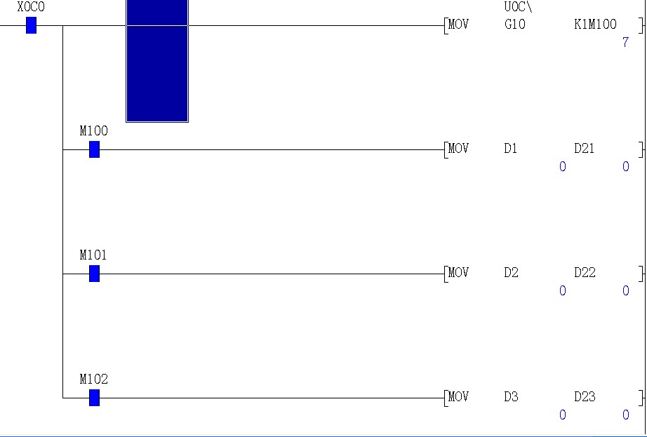 裝在第12槽上的Q64TD模塊   地址為  C   。PLC參數(shù)為原始設(shè)置  (TI  軟件里面設(shè)置  CH. 1 地址  D1       CH.2   地址 D2        CH.3   地址  D3后)編程如下