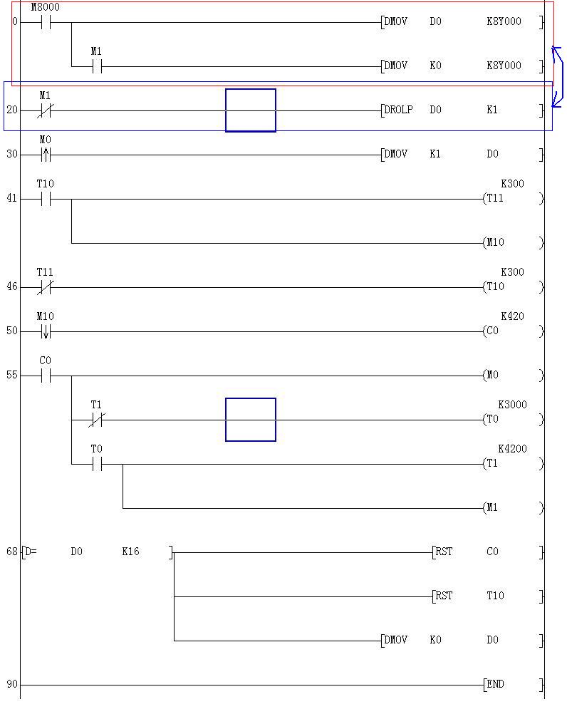 使用移位指令并不能對簡化程式起到什么作用。而對于程序的簡化作用明顯的是使用系統的FB,當然如果在GX軟件中把玩就要看了PLC的型號,如果是GX IEC軟件,那么通過編寫FB塊就可以大大的簡化如此的重復工作,同時Gx中包含的LongTime功能塊又可以大大的減少計數器與定時器搭配長定時這個缺陷。