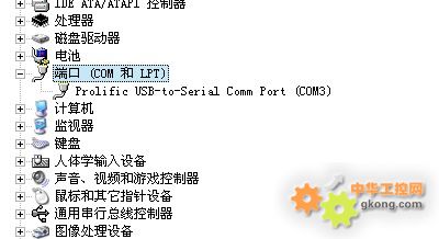 6、 安裝完成后,請確認在Windows的“開始\控制面板\系統\硬件\設備管理器”菜單的\“端口(COM和LPT)”\展開條目中出現“Prolific USB-to-Serial Comm(COMx)”,這個COMx就是USB編程電纜使用的COM口號,該端口號與電腦有關,一般為COM3或COM4,以后每次使用只要插入編程電纜就會出現該COM口,你只需在編程軟件或通信軟件等應用軟件中選中該COM口號即可通信。