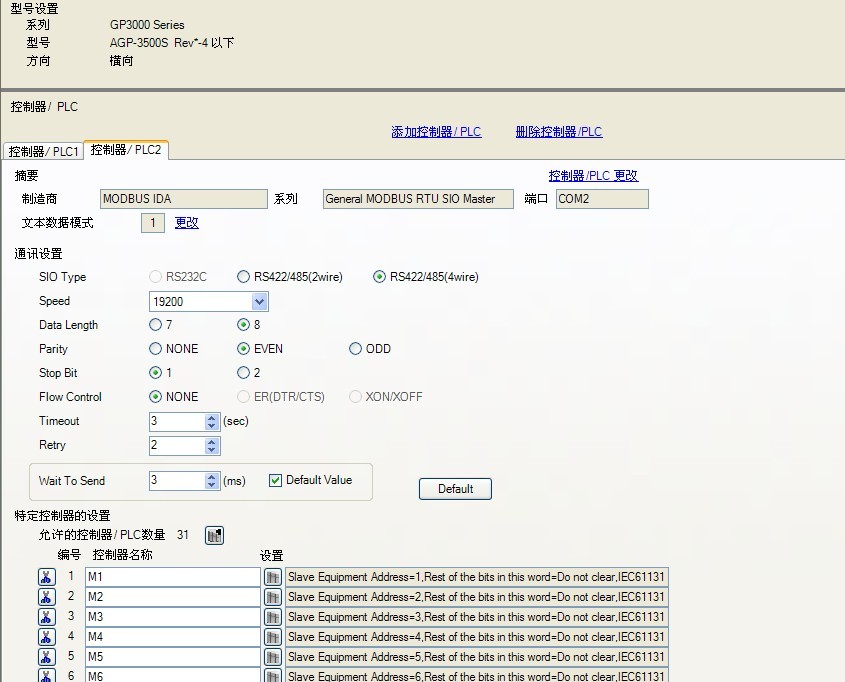 現遇到一事(設備從另一臺公司搬移過來),臺灣產JPS變頻器與PROFACE人機界面MODBUS IDA通信采用RS485(2線),變頻共8臺另加6臺流量計,同樣采用此方式通信。