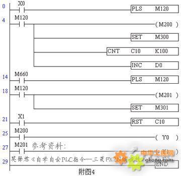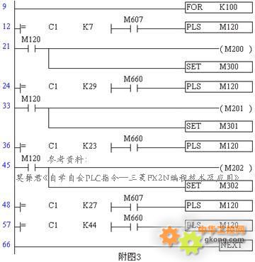 M300的接通,說明M120曾接通過;但執行到下一條PLS M120指令時,由于其執行條件是斷開的,故又使M120復位——這類同于《自學自會PLC指令——三菱FX2N編程技術及應用》所介紹的現象。