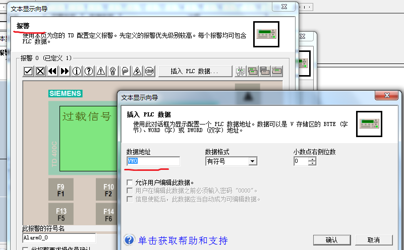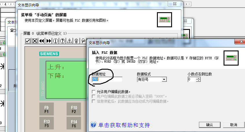 2.除按鍵可設定為位地址外,其他插入的數據需為VB/VW/VD之類;