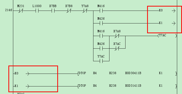 紅框里的是上下兩個(gè)梯形圖的連接點(diǎn),是一一對應(yīng)的,是空間不夠的一種折中,K0對K0,K1對K1.接在一起就可以了。