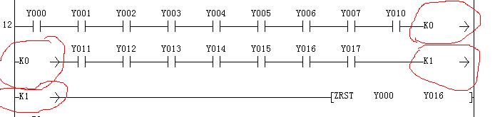 紅框里的是上下兩個梯形圖的連接點,是一一對應的,是空間不夠的一種折中,K0對K0,K1對K1.接在一起就可以了。