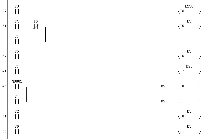 本人剛接觸PLC,這是按照書(shū)本上編的一個(gè)交通燈梯形圖,幫我看看有什么問(wèn)題嗎?為什么一開(kāi)Y0 Y2 Y5都工作了呢