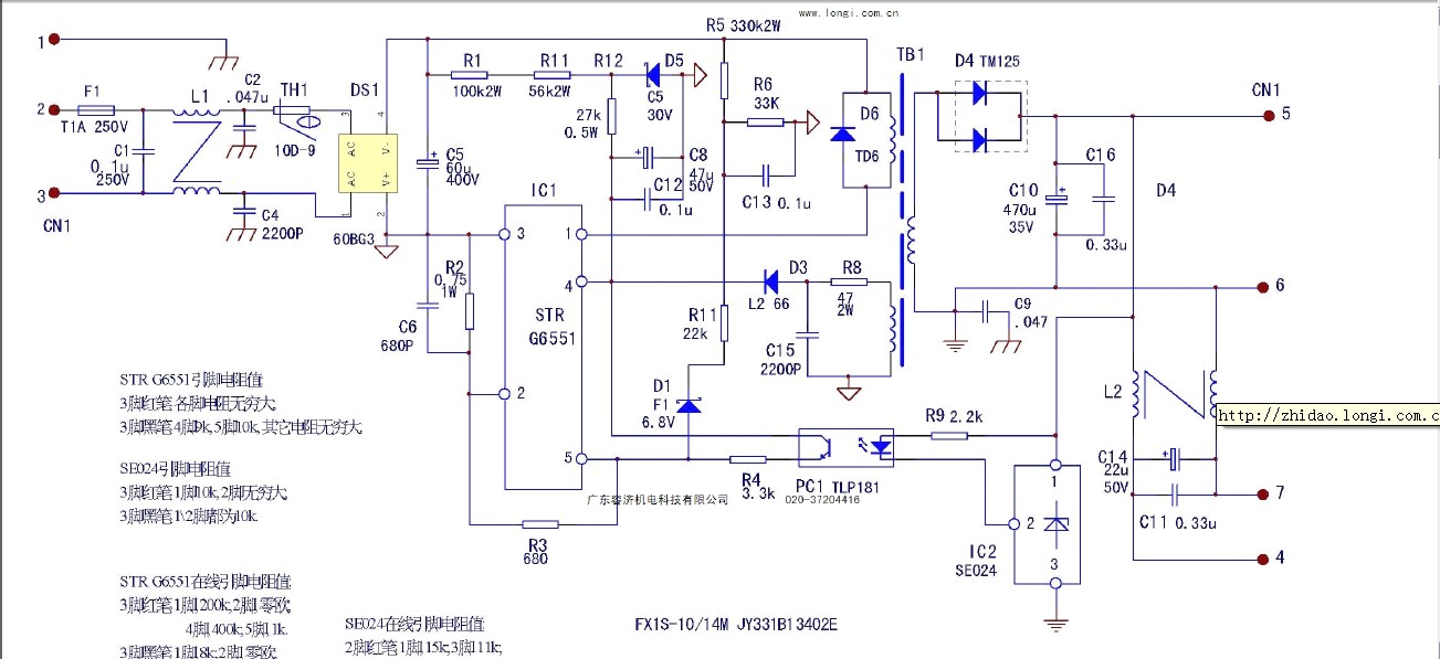 可能是直流經過G6551芯片控制,通過TB1變到次級線圈,次級線圈再半波整流。