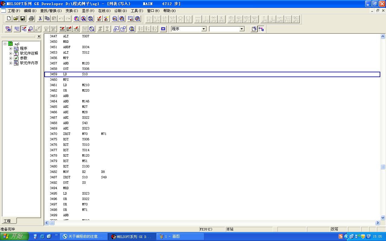 在很多的梯形圖中,由于著者可能會(huì)有一些不符合規(guī)定的編程手法,導(dǎo)致部分程序無法顯示出來以一片黃色的區(qū)域來顯示,這時(shí)我們可以這么來處理:首先將程序轉(zhuǎn)換成指令表程序,然后再在對應(yīng)不好地方修改太冗長的程序,把它分解成若干的小程序,或是有錯(cuò)誤的地方也可以修改,修改之后再轉(zhuǎn)換成梯形圖程序,如下幾個(gè)圖片所示: