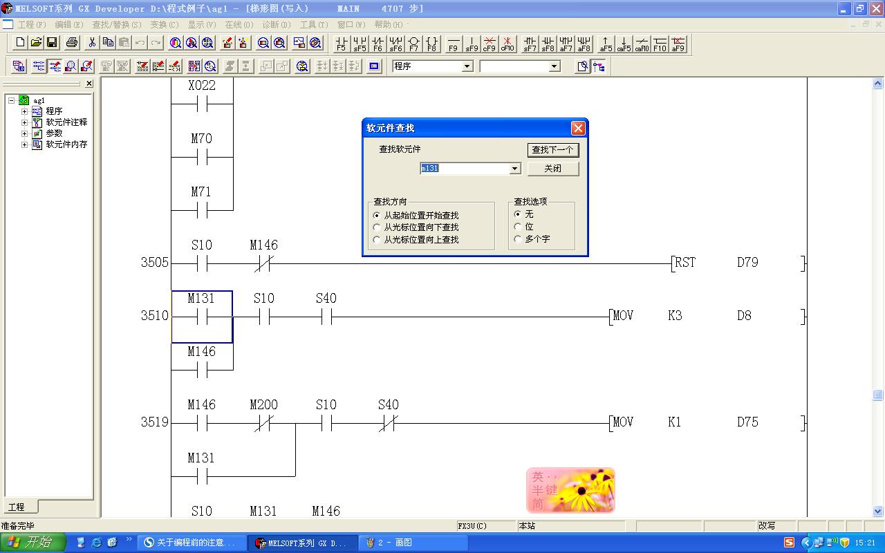 修改完畢再轉(zhuǎn)換過來,查找M131,已顯示出里面的程序。