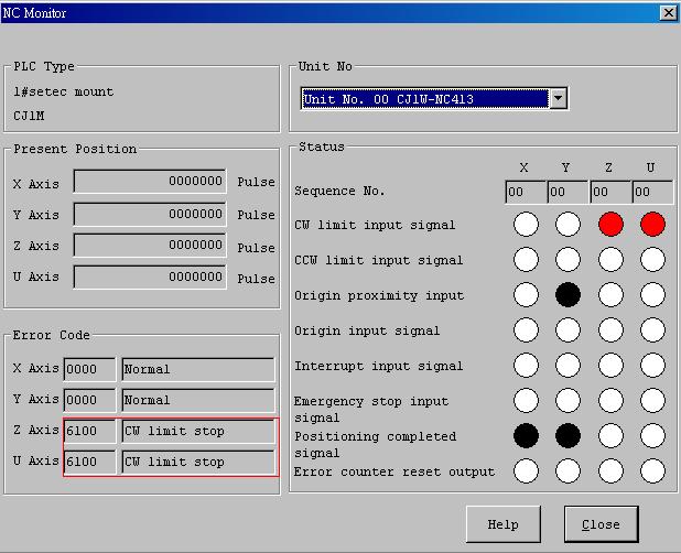 請問兄弟怎樣傳上去呀,我把原來的備份傳上去了,但是還是報警哦,模塊的RUN\ERC\SENS\DATA常亮,X\Y\Z\U燈閃亮。CX-ONE在線監控報警代碼6100.期待你的回復。
