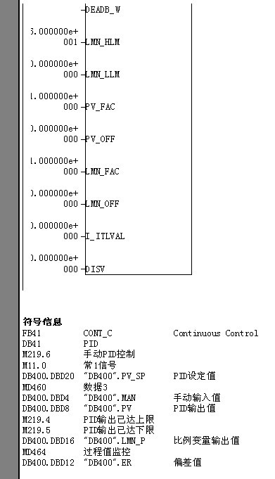 系統組成是這樣的,做恒流量控制。流量調節是通過變頻器來實現的,反饋值輸入315-2DP的AI,設定值來自觸摸屏。在OB35里面調用FB41,設定值采用占流量計滿量程的百分比換算成0~100.0之間的數。流量反饋也是如此換算成0~100.0之間的數值(用FC105),輸出值LMN采用FC106(0~100.0)換算成PQW輸出給變頻器,作為變頻器的頻率給定。先是測試了手動PID,運行的時候流量很穩定的變化。投入自動PID后,我也是按照有人說的先只投入P(I,D未選擇),從小到大逐漸增加P,測得P的臨界值。可是我從0.01開始一直到2吧沒有找到一個合適的。PID輸出波動很劇烈,反饋回來的流量信號也是從幾百蹦到0,又蹦到幾百。PID根本無法穩定。。。后來實在沒辦法,就試湊I和D還是一樣的效果。不知道問題出在哪。。。。都要崩潰了,后來采用平滑濾波(取平均值)的方法處理反饋信號,還是沒有什么用。沒辦法只好采用限制上下限來使得輸出在一個較小的范圍,但是流量根本無法控制。。。我都搞得要哭了、、、PID的原理我懂,再學校也做過實驗,就是看階躍響應。P調節器的控制應該是雖然存在穩態誤差,但是至少應該會穩定啊,而不是這樣蹦來蹦去。求論壇高手指點哦PID塊見圖。。
