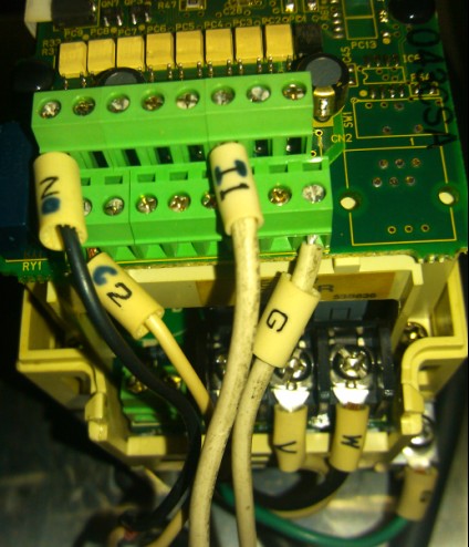 有一個比較老的松下變頻器,控制端的接線原理不明白,其中的NO端和C2端是一組線,接到我一個電磁感應封口機上的一塊主板的,I1和G應該是控制啟動的。