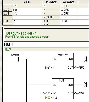 呵呵有一個西門子PLC-S7-200的壓力子程序,好像是模擬量轉換,但是沒有看到得到AIWO地址,還要為什么要進行實數相加?哪位前輩指點一下小弟,本人是新手,