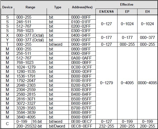 MODWR K1 H1000 D10是指將D10的值寫入1#從站(變頻器也一樣)H1000地址為位里.請問那位知道.H的地址位是怎樣排的,有表嗎.就象D1120通訊數據的定義一樣.