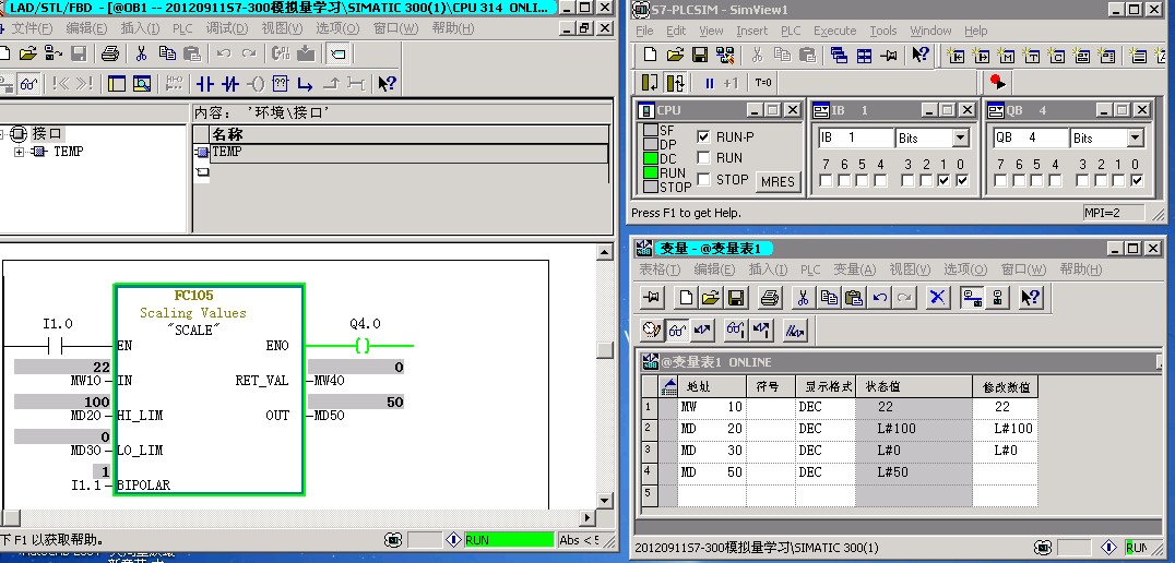 按教材,編了一個(gè)FC105的程序?qū)W習(xí)模擬量。可是輸出值咋感覺(jué)不對(duì)呢?