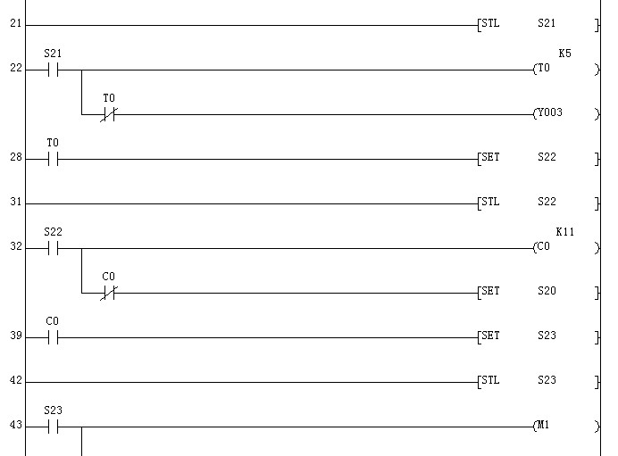 步進梯形圖中用了C0計數后,后面再用m8029向下進行就不工作了怎么回事,哪位高師指點一下
