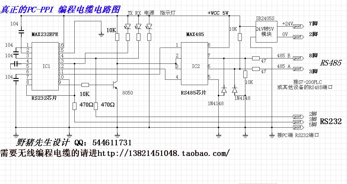 現在市售的那些PC-PPI電纜實際里面根本就沒有任何芯片,就是幾個電阻和一個三極管組成切換,這樣的電纜我看大家購買的也不少!