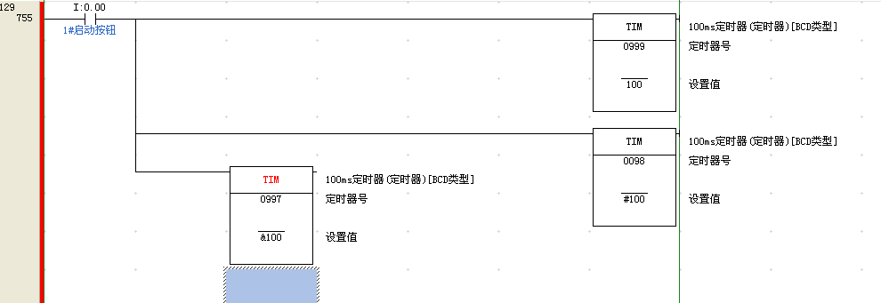 TIM  指令默認的是bcd類型(十進制),所以#100 就是10秒,但是你若直接用十進制的前綴&時,系統會提示錯誤,當然也使用區地址,此時區地址相當于一個字節(八個位),一般用字(D)來表示,因為歐姆龍沒有字節的符號