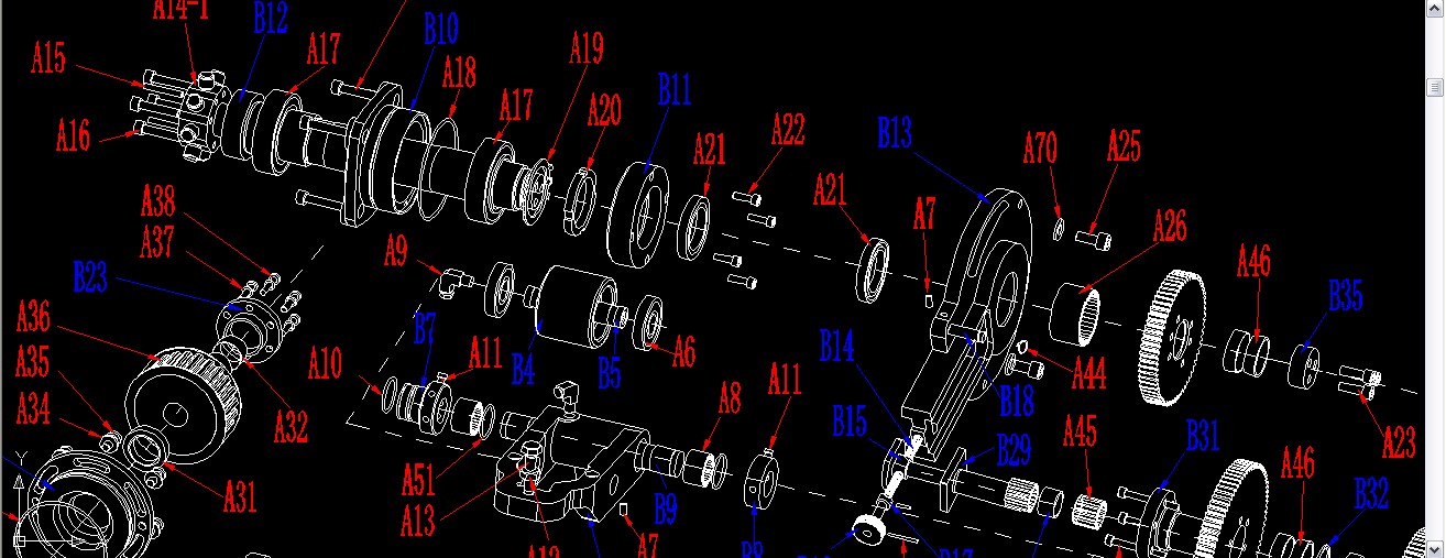 這個用三維軟件嘛,傳說中的組裝或者爆炸圖都可以這么做。你只要知道東西的實際尺寸,然后在三維軟件里加入這些零件,然后建立裝配體,意思就是在三維軟件里把所有零件畫出來,然后再在三維軟件里當成實物裝配一次。在裝配的過程中,實際裝配在一起的,你可以運用平時但有一定距離等方法讓所有零件形成一個在空間上的分布。然后出CAD格式,所有的實物就會以二維輪廓的方式自動生成CAD圖紙。你可以用SOLIDWORKS  或者PRO-E  一般只要有裝配功能的三維軟件都靠譜。