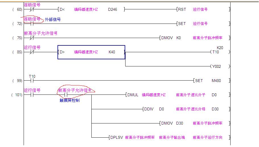 現在有臺設備出現奇怪的現象,編碼器發送脈沖控制伺服的速度,編碼器接到主機的軸上,正常運轉沒有問題,可是運行過程中伺服電機會自動停止運轉,在機臺停機后再開機,伺服可以照常運轉,咨詢過三菱的熱線,說PLSV是沒有脈沖數的,我的啟動信號是機臺的常開觸點,按理即使有間斷的斷開,也不會伺服停止,因為是沒有停止信號的輸入的,沒有自鎖問題的出現,干擾的話也應當不會,伺服的使能都是設定為上電使能的。