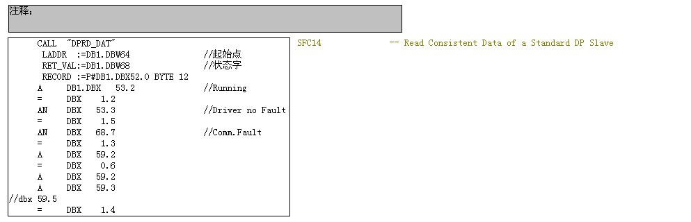 PLC315-2DP與ABB變頻器通訊,需用SFC14采集變頻器的各種信號(hào)。想求教下SFC中LADDR到底起了什么作用,跟RECORD有什么區(qū)別?查了很多資料感覺看的云里霧里,能幫忙詳細(xì)解答下下面每條指令的意思嗎?謝謝