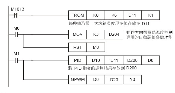 在臺達的DVP-PLC編程實作范例中看見一個PID的溫控程序