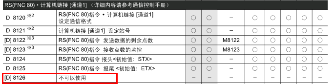 這個是FX系列通訊設置的,D8126表示設定接收的終止字符