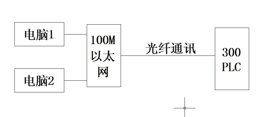 朋友有個水處理項目,是兩臺電腦通過以太網(wǎng),經(jīng)過光纖和PLC通訊,如圖